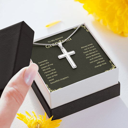 To My Dearest Grandson | Always Keep Me In Your Heart - Stainless Steel Cross Necklace